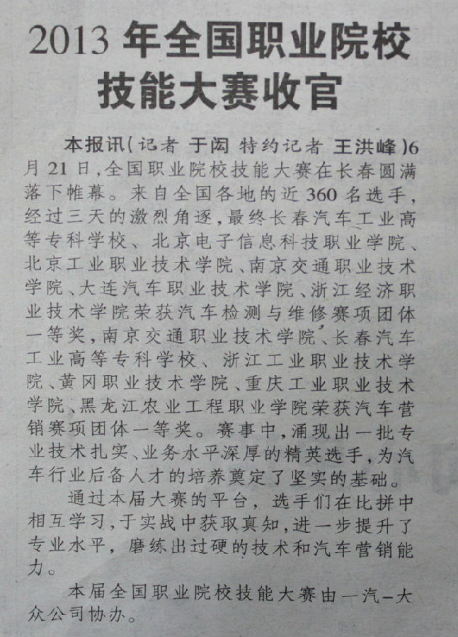 本届全国职业院校技能大赛由一汽—大众公司协办。