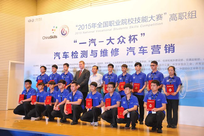 一汽大众销售有限责任公司、北京中经合机电设备有限公司等八家企业获得2015年全国职业院校技能大赛吉林分赛区最佳合作企业荣誉称号。