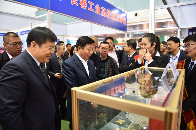 吉林省教育厅大学生就业指导中心主任郑志宏(左二)参观(高专一号)