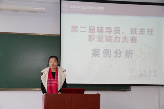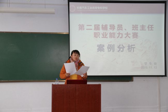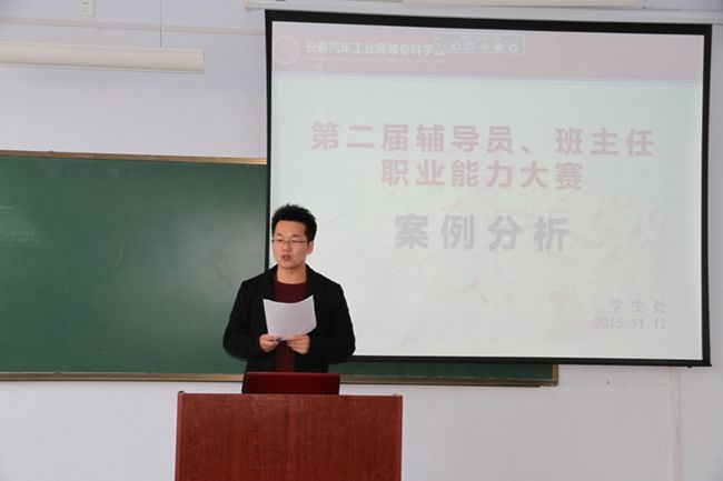 按照学校第二届辅导员、班主任职业能力大赛的安排,继“笔试考核” 环节之后,2015年11月12日下午1:30,辅导员、班主任职业能力大赛案例分析环节比赛如期进行。学生处及各学院共9名领导和教师担任评委,17名辅导员老师参加了比赛。