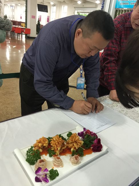 本着公平、公正、公开的原则,由专业人员及学生代表组成现场评委团,从菜的形、味、意三个方面来给选手打分,打分结果当场核算排名。在现场的众多师生一次次对菜品的品尝中,参赛选手的努力和付出得到了评委和观众们的一致认可。