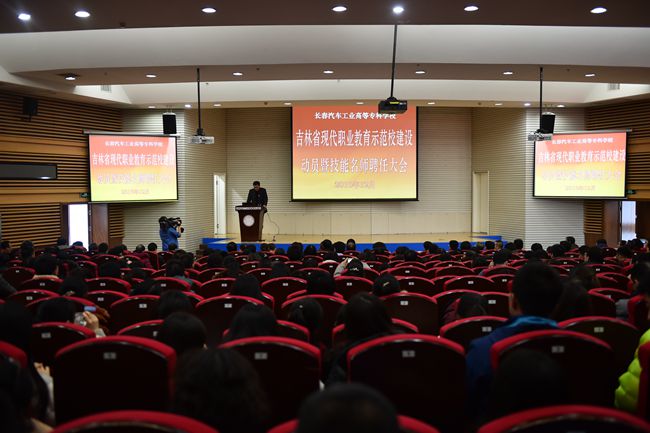 2015年12月17日,吉林省现代职业教育示范校建设动员暨技能名师聘任大会在校报告厅隆重举行。校长李春明、副校长明晓辉、校长助理胡国良及全体教职工参加了大会。大会由副校长明晓辉主持。