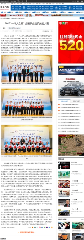 6月18日,2015年“一汽-大众杯”全国职业院校技能大赛吉林分赛区比赛在长春汽车工业高等专科学校完美落幕,来自全国 85 家职业院校的 331 名精英选手参加了比赛,经过三天的激烈角逐,最终长春汽车工业高等专科学校、南京工业职业技术学院、湖南汽车工程职业学院、北京工业职业技术学院、重庆工业职业技术学院等20余家院校分别摘取了汽车营销赛项、自动变速器、汽车电气系统、汽车故障诊断等赛项的最高奖项。在为期三天的赛事中,选手们以严谨的工作态度,精湛的业务技能和顽强的进取精神,彰显了中国职业教育的精英风采,展现了高超的技术水平和深厚的专业理论知识。全方位的体现了职业技术教育的成果。