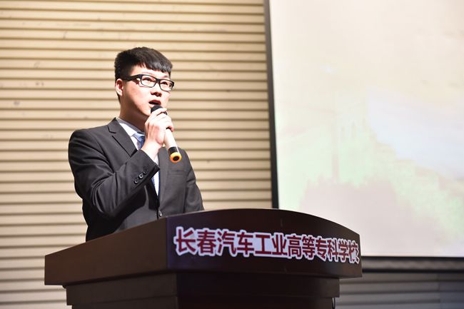 图3汽车营销学院奥迪ACC订单班包文龙同学代表第一批“青马”学员和党校学员发言