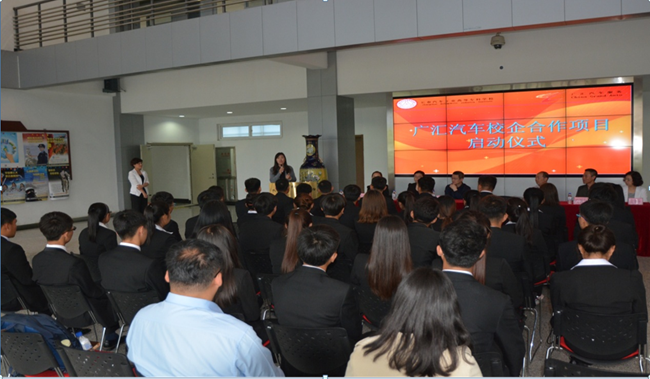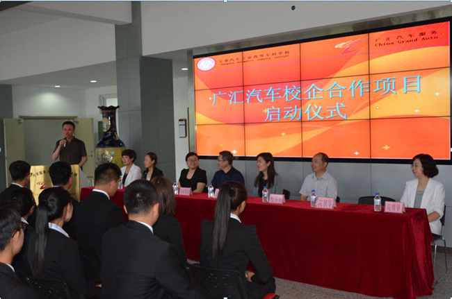 2016年6月15日上午9时50分,长春汽车工业高等专科学校隆重举行了校企联合培养项目—广汇订单班的开班仪式。莅临本次开班仪式的企业及校方领导嘉宾有广汇集团北部区人力资源总监安兰、招聘主管李玉,学校教务处陆俊松副处长,汽车营销学院院长王泽生、汽车营销学院副院长任玲等,本次开班仪式由汽车技术服务与营销专业教研室主任高腾玲主持。