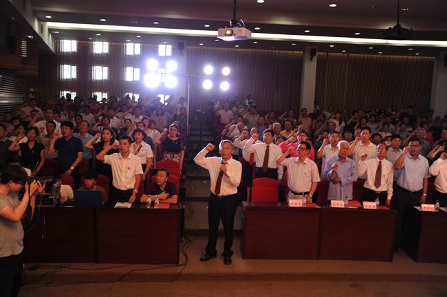 大会由副校长明晓辉主持。在奏唱国际歌中拉开序幕。首先,全体党员在党旗下庄严宣誓,重温入党誓词,重新体验入党宣誓的庄重性和严肃性,时刻提醒每一个共产党人,不忘入党初心,不忘党员的责任使命。随后大会进入表彰环节,表彰了过去一年涌现出的6个先进支部、12名优秀共产党员、6名优秀党务工作者和28个党员先锋岗,极大地激发了广大党员干部创先争优、立足岗位做贡献的热情。