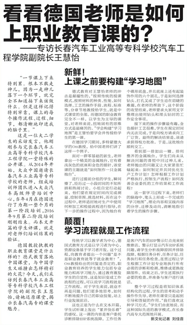 这是一位大二学生的采访发言,他刚刚参与完长春汽车工业高等专科学校汽车工程学院一趟特殊的公开课。从2014年开始,大众中国邀请长春汽车工业高等专科学校的老师,组成培训师团队进入大众汽车高级师资培训中心,当年4月在德国进行了为期一整个月的第一阶段培训,2016年9月第二期培训刚刚结束,而本文开篇的学生评课,就是对老师们培训结果的验证。