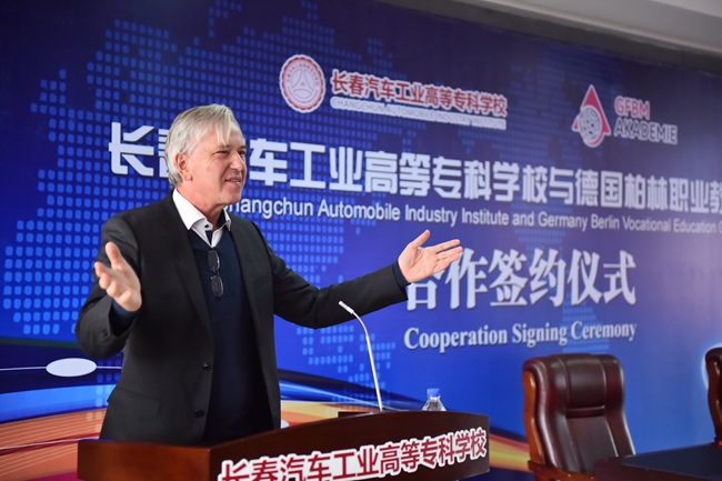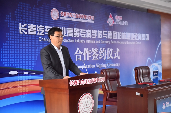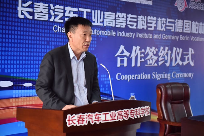 最后,长春市教育局副局长张茂金对我校与柏林职教集团达成正式签约表示由衷的祝贺。他表示今天的签约仪式虽然简短,但值得铭记,它不仅是长春汽车工业高等专科学校办学的国际化进程的一个里程碑,也标志着长春职业教育在推进国际合作、打造职教品牌方面迈出了坚实的一步。