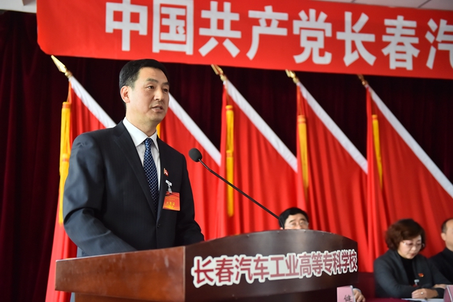 校党委书记安军同志代表学校党委作了题为《凝聚发展合力,锐意改革进取,为全面建成一流高职院校努力奋斗——中国共产党长春汽车工业高等专科学校第二届委员会工作报告》。