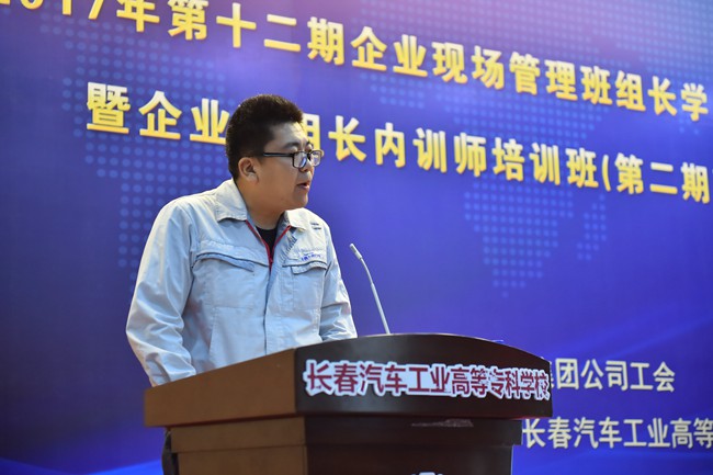 来自一汽铸造有限公司员工孙威、一汽轿车公司员工李树林、长春丰越公司员工褚岩分别代表内训师和学历教育培训班学员上台发言,畅谈学习生活并郑重承诺:努力学习,勤恳工作,为集团公司的班组管理和建设贡献力量!