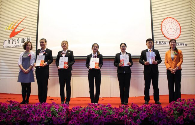 2017年6月8日,长春汽车工业高等专科学校广汇订单班结业式在报告厅隆重举行。广汇汽车北区区域总经理郭中起、北区区域人力资源总监安兰、北区区域运营副总李明阳、长春汽车工业高等专科学校副校长胡国良等校企代表参加了结业式。