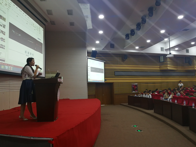吉利动力总成人力资源部杨暘经理,向学生介绍了吉利总成的基本情况和发展方向;台州发动机人力资源部张宇翔科长、生产主管胡以成、项目经理王超、贵阳发动机人力资源欧志琼科长分别对台州发动机厂、贵州发动机厂的工作环境、薪资待遇、招聘岗位等信息一一向学生做了讲解。