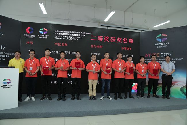 “卓创至诚杯”汽车改装造型大赛二等奖选手与领导合影