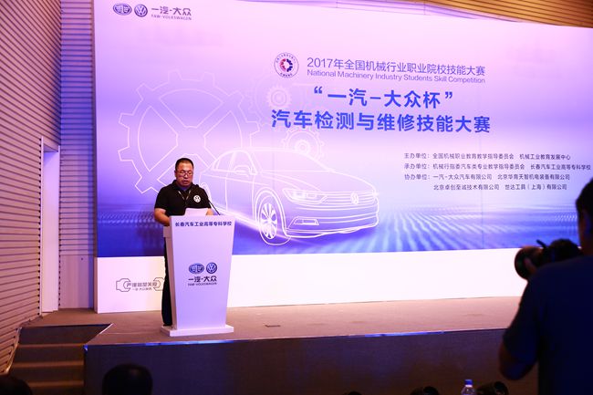 长春汽车高专副校长明晓辉主持“一汽大众杯”汽车检测与维修技能大赛闭赛式