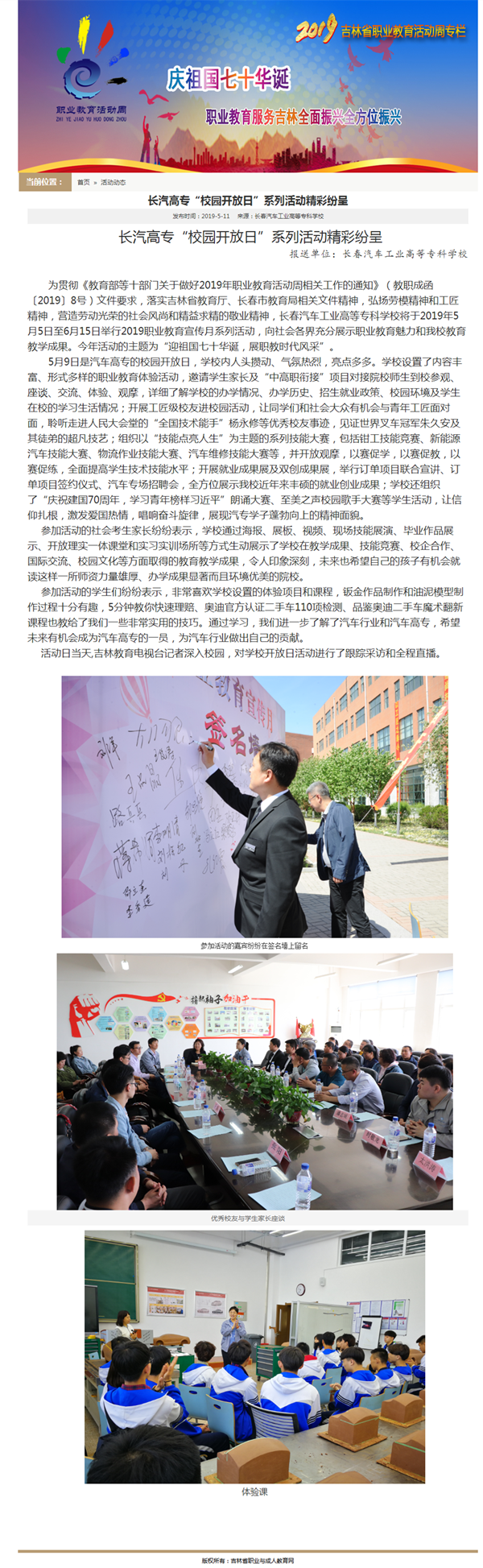 (来源:吉林省职业教育活动周专栏2019年5月11日)