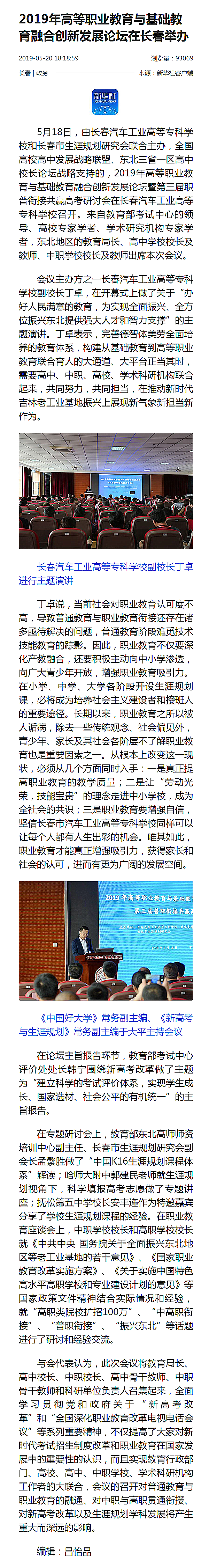 新华社——2019年高等职业教育与基础教育融合创新发展论坛在长春举办