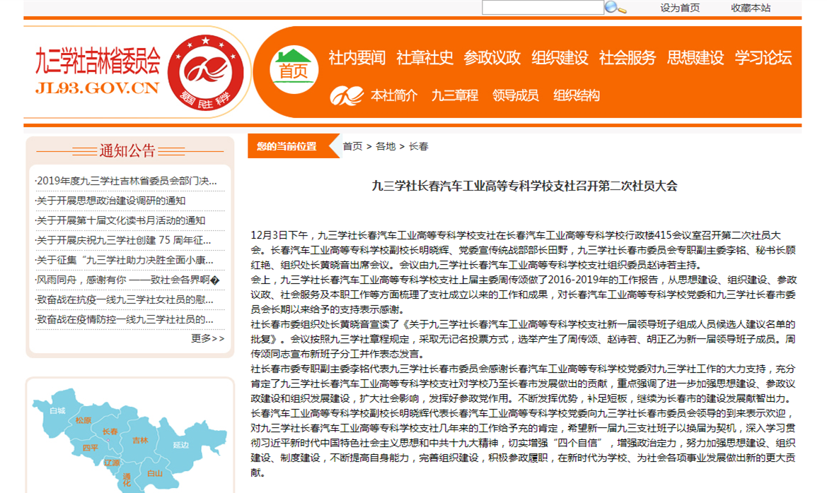 九三学社吉林省委员会——九三学社长春汽车工业高等专科学校支社召开第二次社员大会