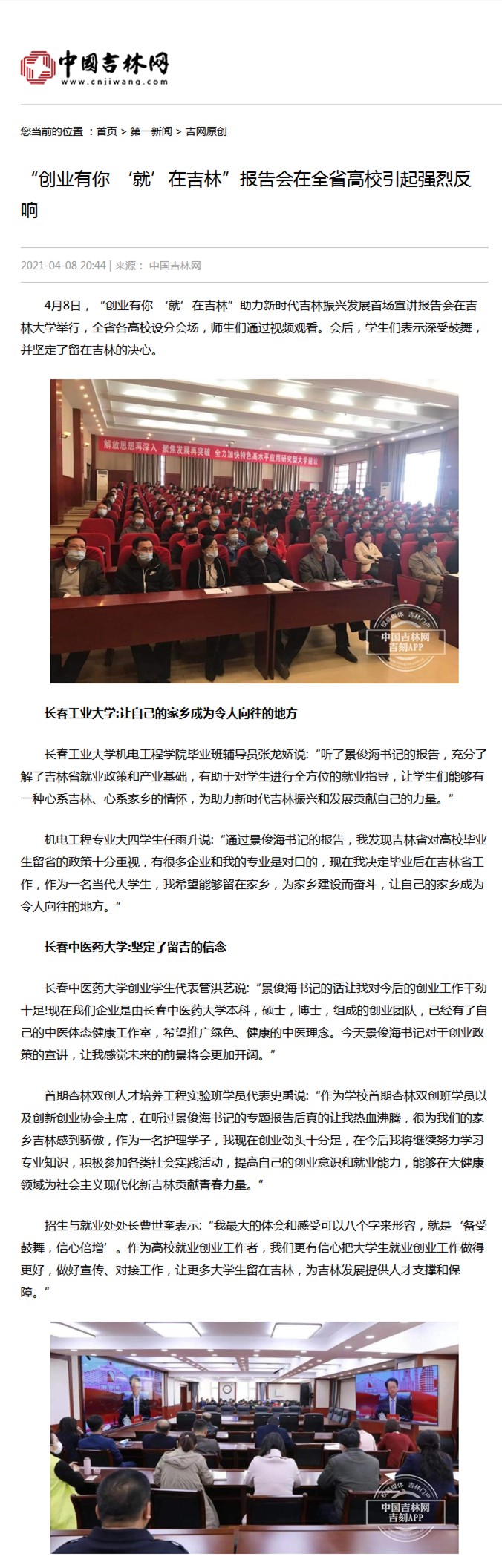 中国吉林网——创业有你 ‘就’在吉林”报告会在全省高校引起强烈反响