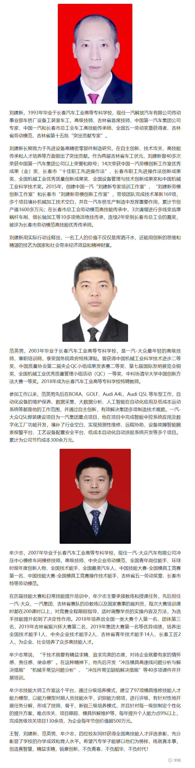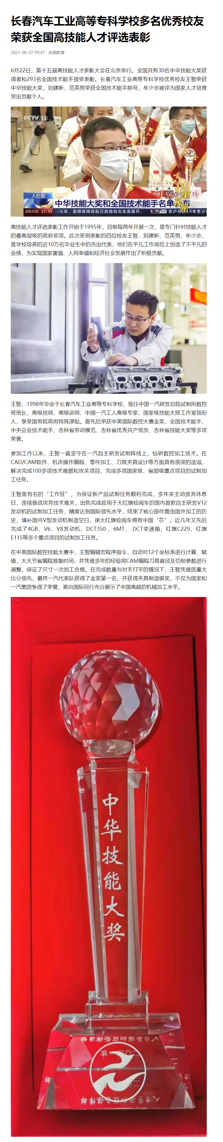 吉报教育——长春汽车工业高等专科学校多名优秀校友荣获全国高技能人才评选表彰