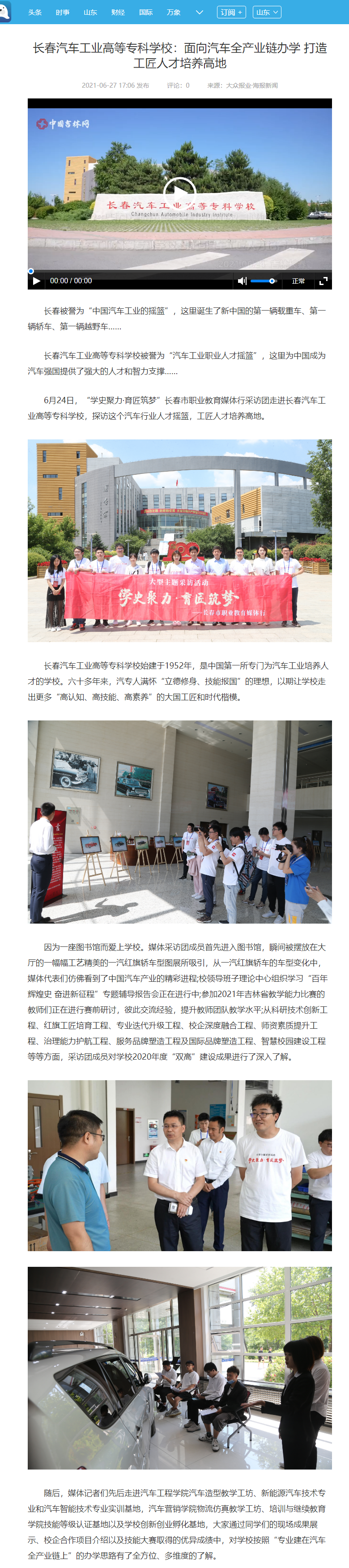 山东大众网·海报新闻——长春汽车工业高等专科学校:面向汽车全产业链办学 打造工匠人才培养高地