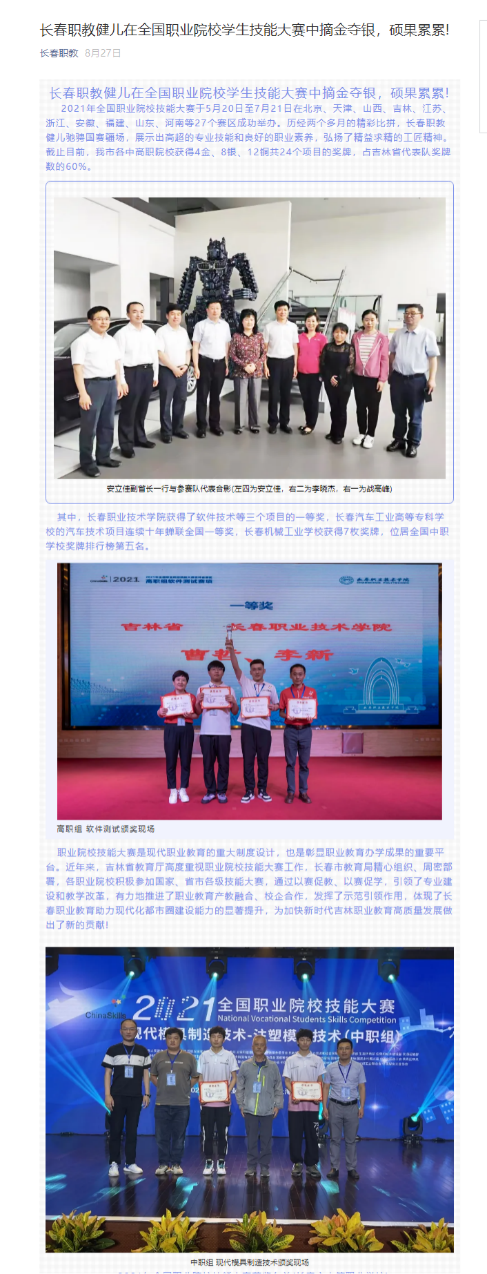 长春职教——长春职教健儿在全国职业院校学生技能大赛中摘金夺银,硕果累累!