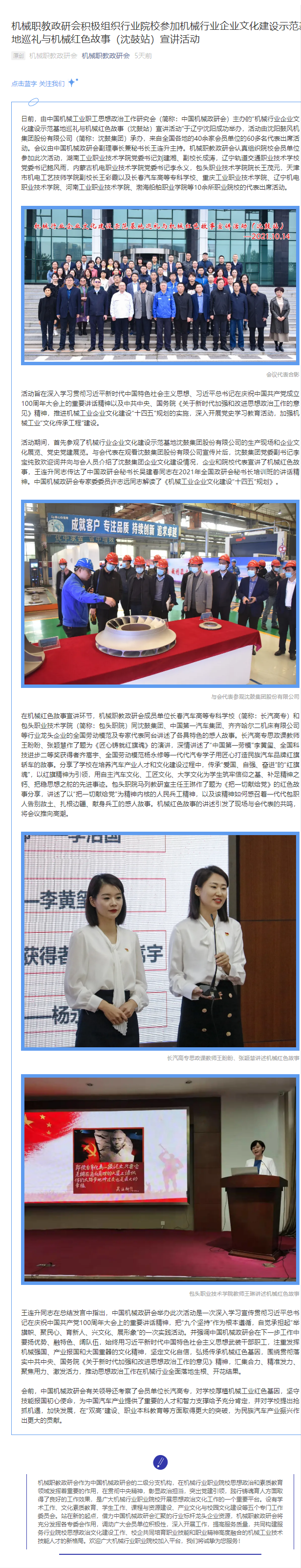 机械职教政研会——机械职教政研会积极组织行业院校参加机械行业企业文化建设示范基地巡礼与机械红色故事(沈鼓站)宣讲活动