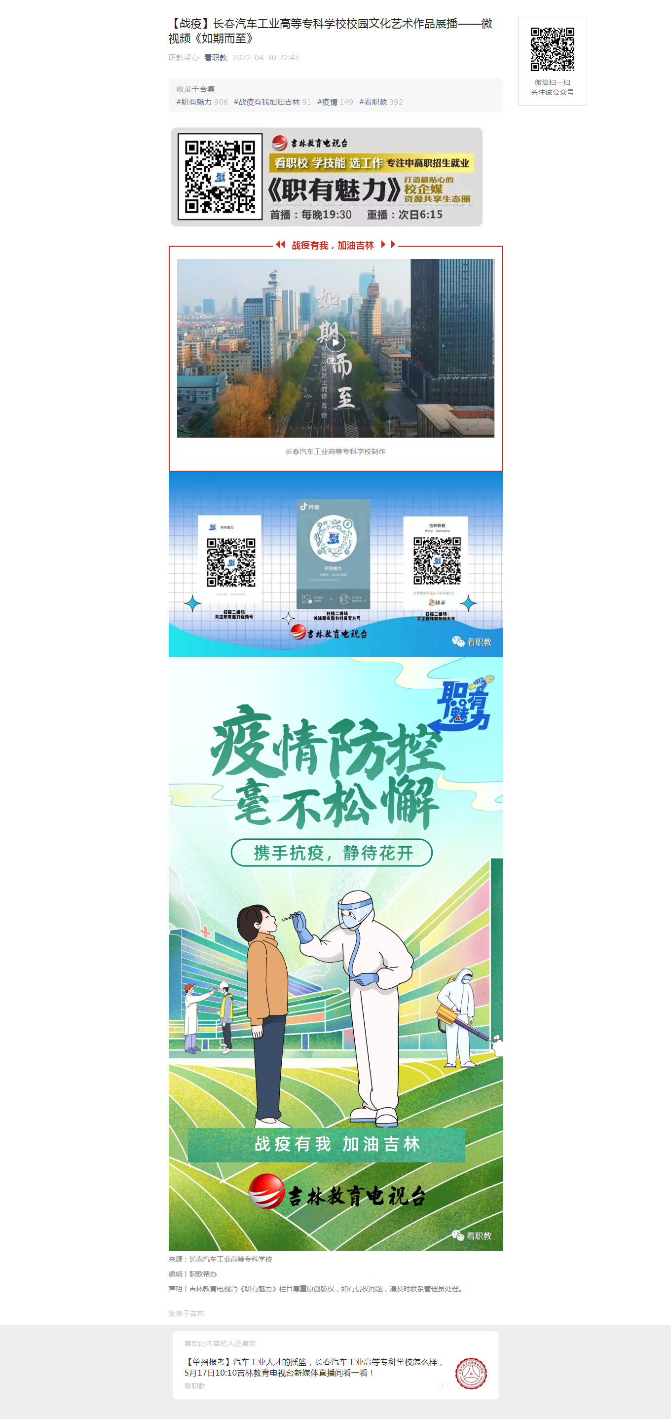 看职教——【战疫】长春汽车工业高等专科学校校园文化艺术作品展播——微视频《如期而至》