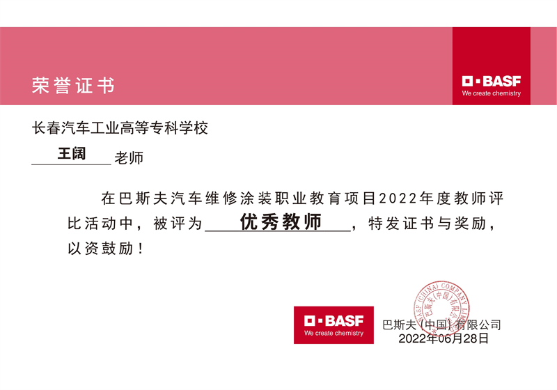 我校荣获2022年度巴斯夫汽车涂装职业教育项目“优秀院校”荣誉称号
