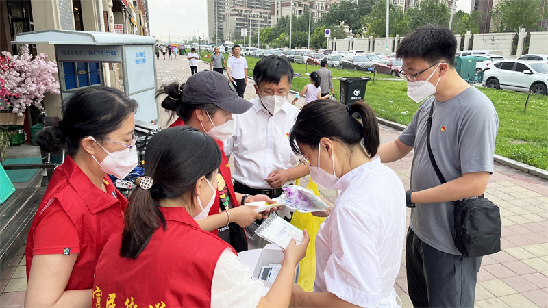 汽车运用学院、汽车工程学院、机械工程学院党总支在包保小区分发核酸检测试剂盒