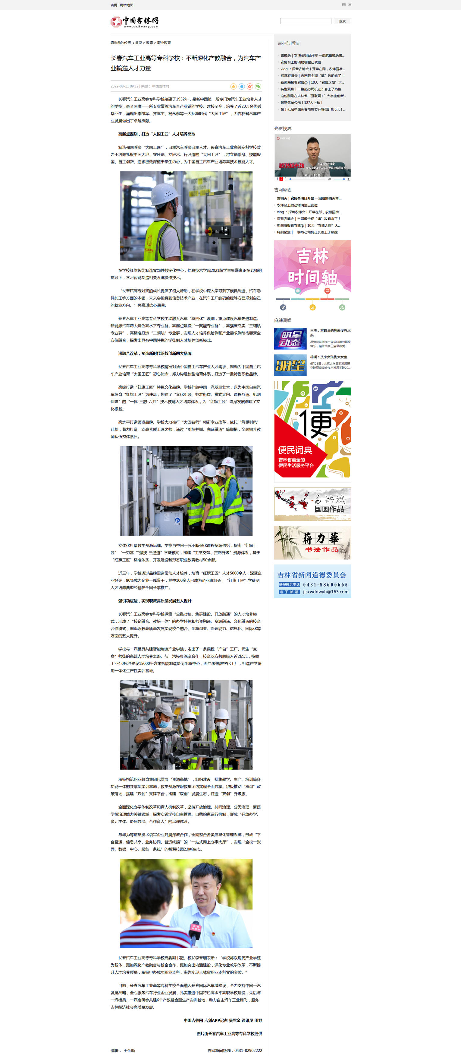 中国吉林网——长春汽车工业高等专科学校:不断深化产教融合,为汽车产业输送人才力量