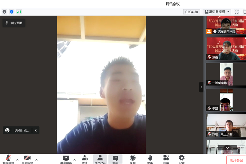 10月1日,汽车运用学院组织学生开展“红心迎华诞,共抒家国情”线上国庆节主题活动。学院党总支副书记苏蔷、团总支副书记徐志鹏、各年级辅导员、省外返校生和学生志愿者参加活动。