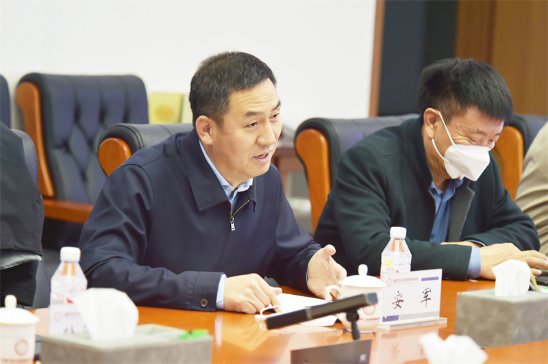 座谈会上,安军、李春明向孙简一行介绍了学校的办学历史、办学特色、育人成效和未来发展思路,重点汇报了学校“双高”建设成就及职业本科建设进展情况。