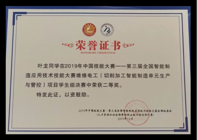 近日,第21届“全国青年岗位能手”名单公布,我校学生叶龙光荣上榜。据悉,“全国青年岗位能手”是全国各行各业先进青年的典型代表,集中展现了新时代中国青年不懈奋斗、永久奋斗的精神风貌,为广大青年立起了标杆、作出了榜样。