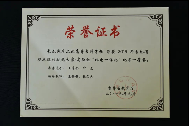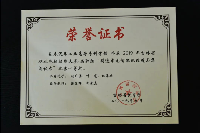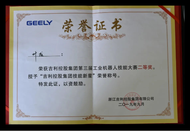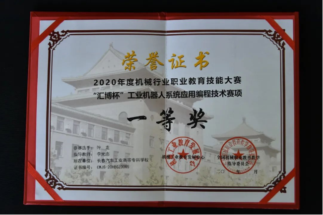 2018年,叶龙进入我校工业机器人技术专业学习。他在课堂上认真听讲,课后刻苦钻研,在不断比赛的循环往复中,渐渐收获了很多同龄学生没有的经验和教训。叶龙认为,和正常的课堂知识学习相比,备赛训练确实辛苦,但是在收获的那一刻,备赛过程中流下的汗水和泪水都变的熠熠生辉。通过魔鬼式训练和比赛,真正的将课堂所学变为自己所用,知识获得了延伸和拓展,日后才能变成企业所需。在实训室的叶龙褪去了青涩,技术技能和心理抗压能力都有了显著增强,对比赛时间和得分点的把控也游刃有余,在校期间多次参加大赛并屡获佳绩。2018年12月获得了吉林省高职院校技能大赛制造单元智能化改造与集成技术赛项一等奖,时隔四日后,又代表学校参加吉林省高职院校机电一体化赛项,荣获获省一等奖。2019年5月代表吉林省参加全国职业院校技能大赛制造单元智能化改造与集成赛项,荣获国家二等奖。2019年9月荣获吉利工业机器人大赛二等奖。2019年11月荣获第三届全国职业院校技能大赛智能制造应用技术赛项二等奖。紧接着的12月,参加2020吉林省高职院校技能大赛制造单元智能化改造与集成技术赛项获得二等奖,机器人技术应用赛项荣获一等奖。2021年参加全国职业院校技能大赛机电一体化赛项获得三等奖。