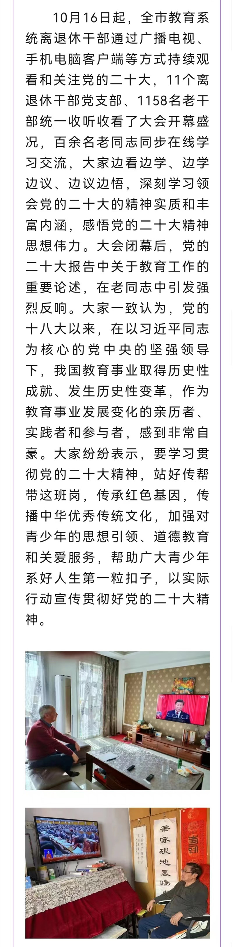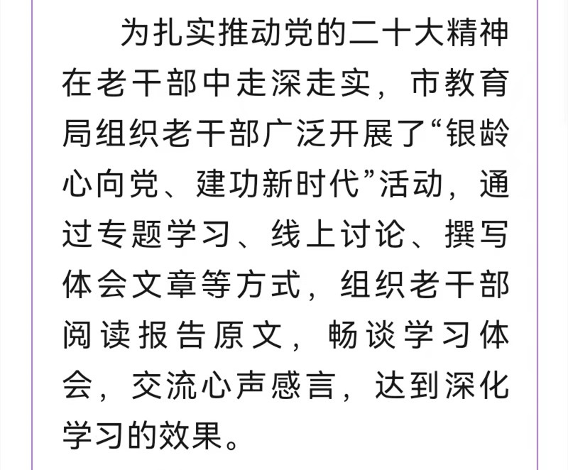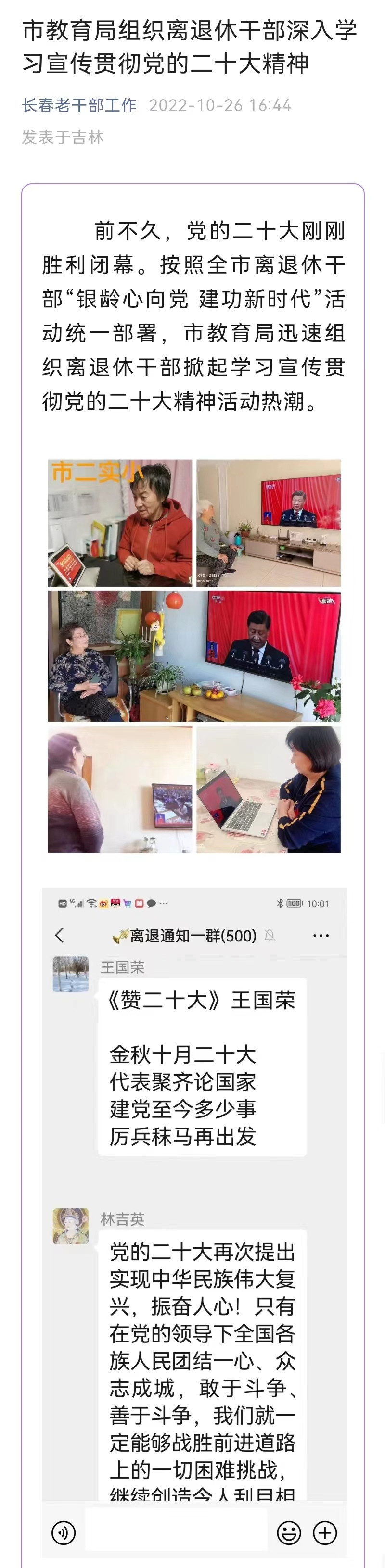 长春老干部工作——市教育局组织离退休干部深入学习宣传贯彻党的二十大精神