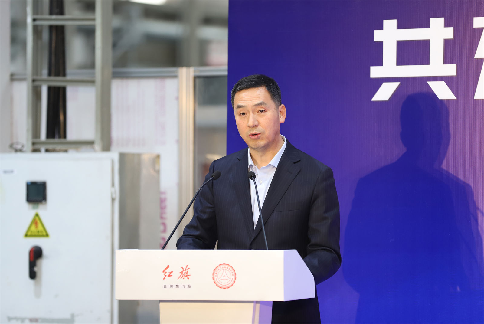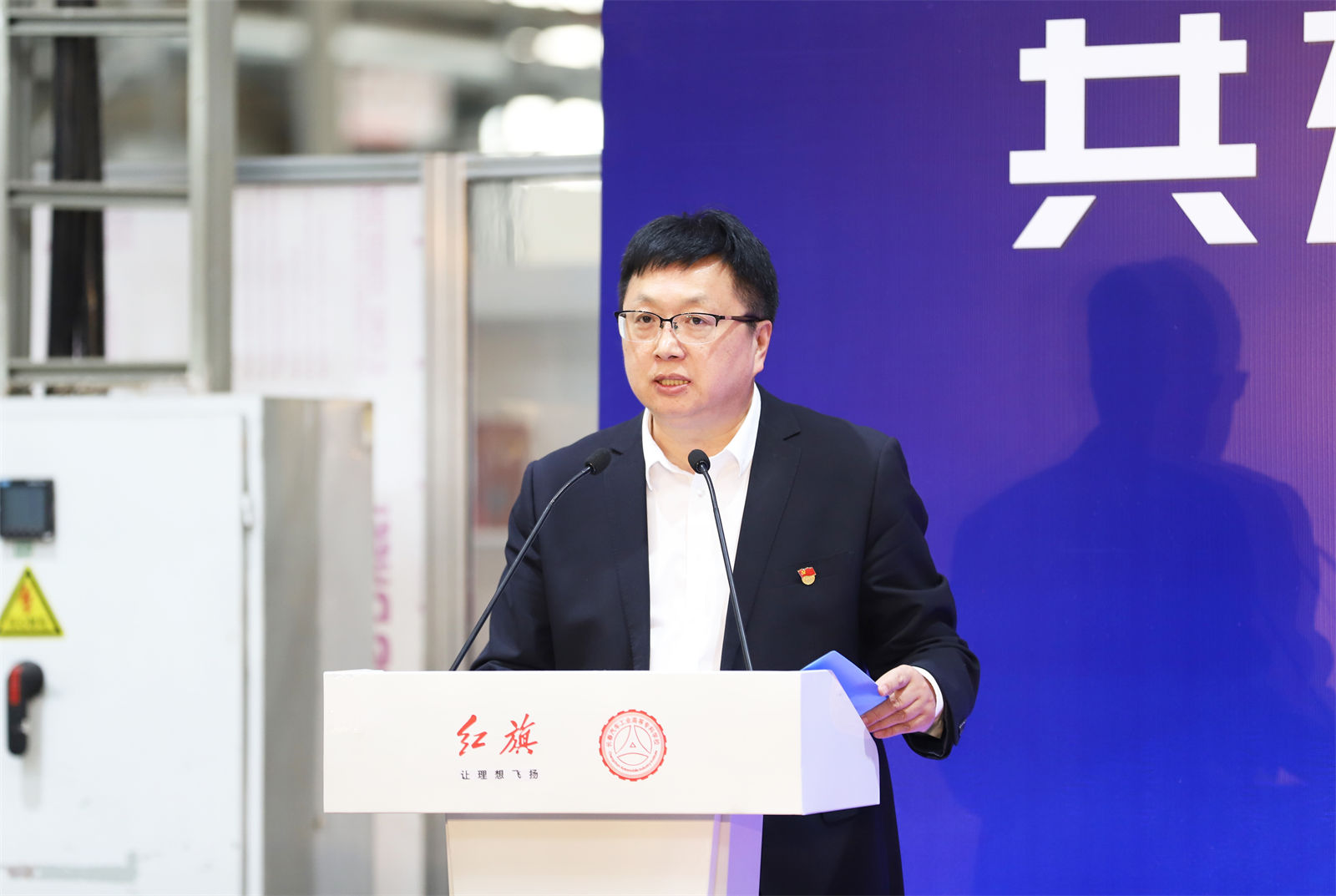 安军在致辞中向与会领导和嘉宾表示由衷的感谢。安军指出,校企共建“数智化高技能人才培养基地”,是一汽红旗和长汽高专发展进程中的一件盛事,是校企合作全面升级的新典范。学校倍加珍惜此次机会,将坚定不移打造“红旗工匠”名片,坚定不移构建校企命运共同体,坚定不移做好一汽的“服务员”,以更大热情、更大气魄投入到新时代发展的变革潮流中,在共同的伟大事业中书写更精彩的“红旗故事”。安军表示,在市委市政府的坚强领导下,在中国一汽的鼎力支持下,校企合作一定会结出丰硕成果,为加快推进长春现代化都市圈建设、开创振兴发展率先突破新局面,为中国一汽创建世界一流企业、长春建设世界一流汽车城贡献更多智慧和力量。