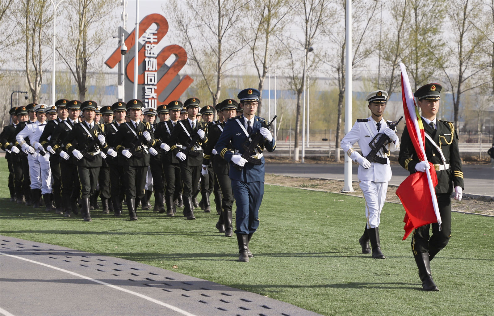 随着庄严的国歌奏响,英姿飒爽的国旗护卫队队员迈着铿锵的步伐走向升旗台,五星红旗冉冉升起,现场全体师生昂首挺胸,向国旗行注目礼,共唱国歌。