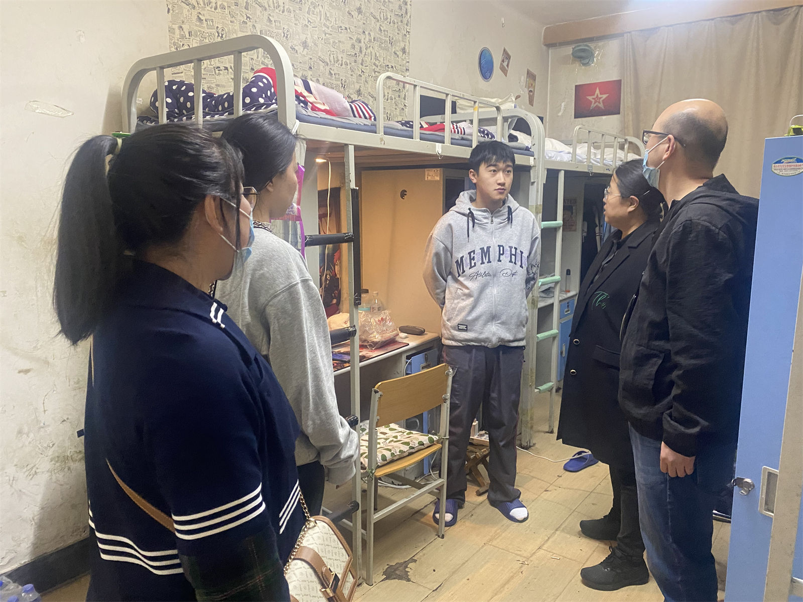 为了深入了解信息技术学院实习学生的思想动态与心理状态,加强对实习学生的管理与指导,扎实推进实习生安全教育工作,4月25日,信息技术学院党支部副书记王伟、副院长杨竹君,实习指导教师刘洋、鲁晓帆、齐豫前往一汽职工宿舍看望21级实习学生,实地考察实习学生生活工作环境,解决实习生急难愁盼问题。