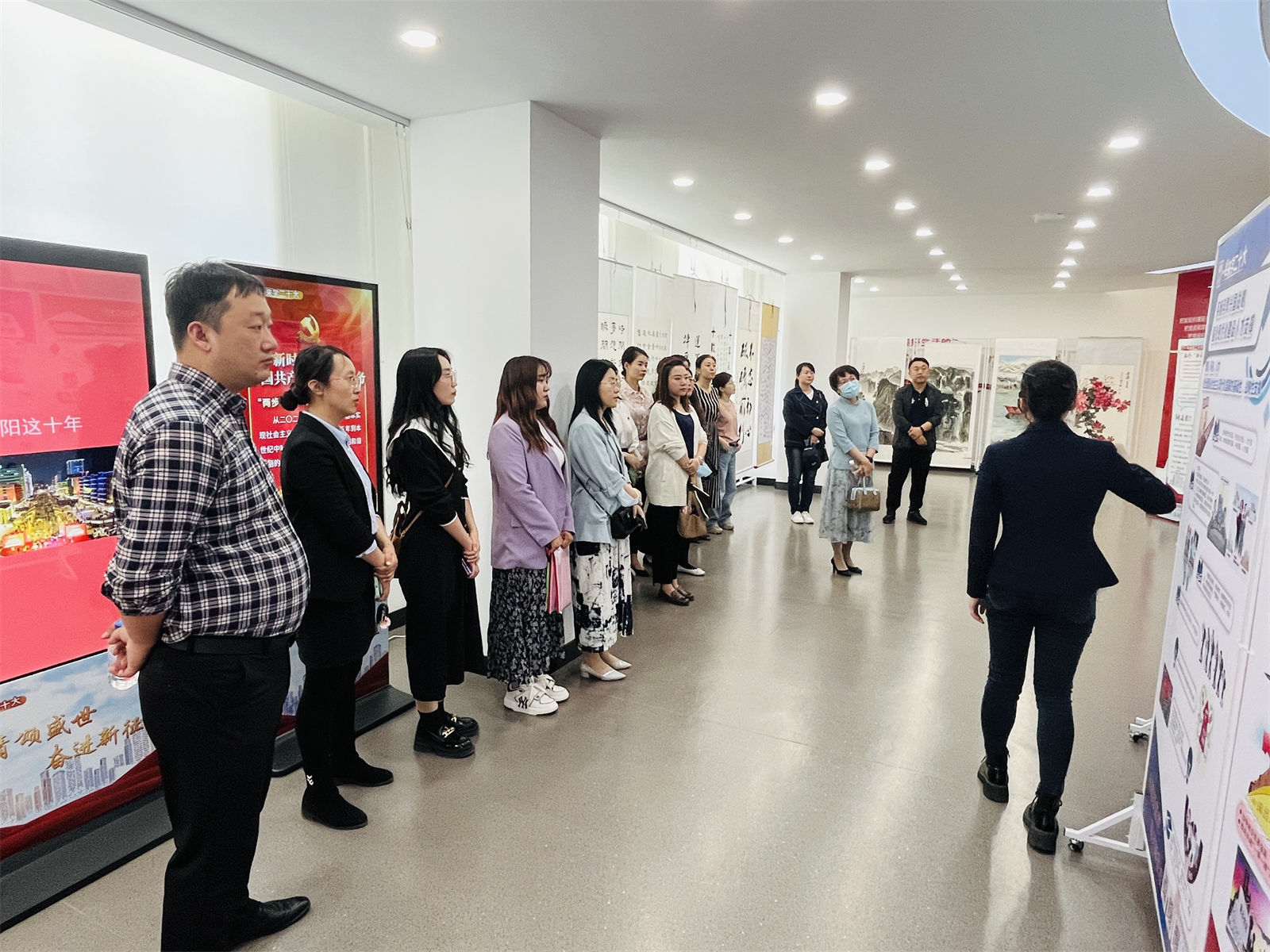 在参观“丹青颂盛世 奋进新征程”党的二十大主题图文展过程中,讲解员以声情并茂的介绍,带领全体党员教师全面了解、深刻领会了党的二十大精神的丰富内涵、精神实质和重大意义。