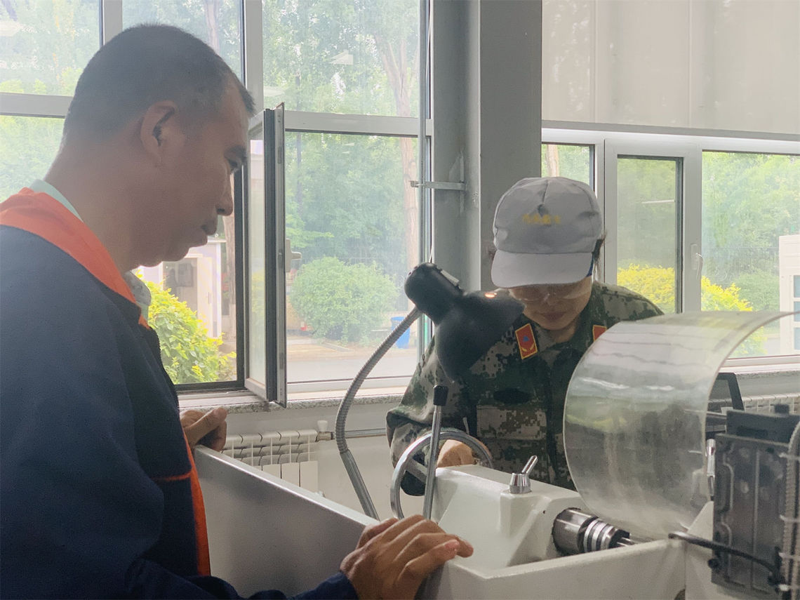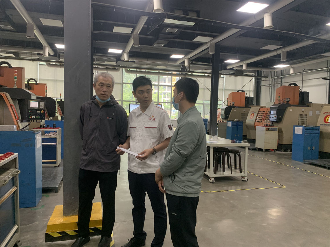 在汇报展示活动中,学习不同工种的学员们分别到各自的实训区域加工,导师在一旁悉心指导,来宾和校领导分别在不同的实训区域观摩学员们的操作流程,了解导师和学员平时的训练情况,并对加工过程提出合理化建议。