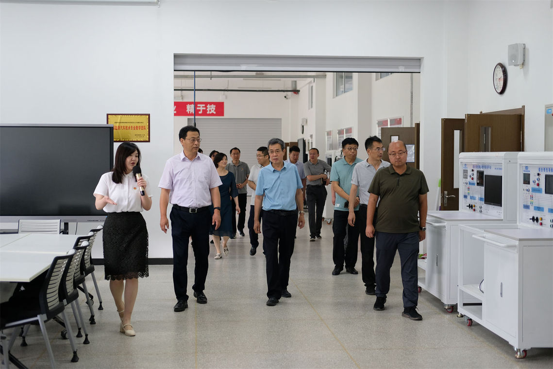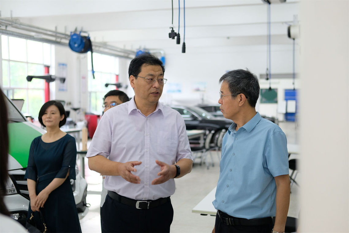 冯东元一行先后来到智能制造协同创新中心、汽车试验技术实训区、汽车造型技术实训区、汽车智能技术实训区、丰田T-TEP实训区、捷豹路虎实训区、智慧汽车协同创新中心、融媒体中心等实地参观调研。