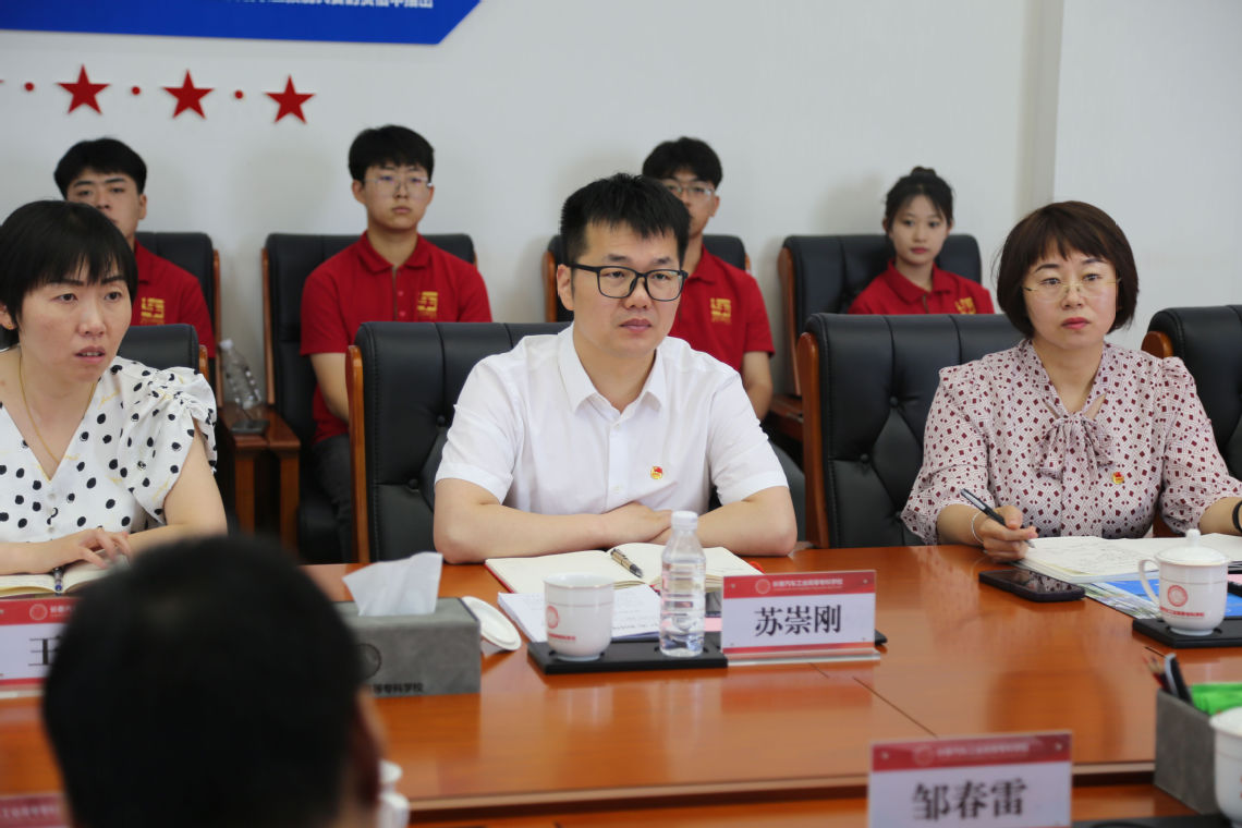 座谈会上,苏崇刚对邹春雷一行表示欢迎,并详细介绍了我校的历史沿革、办学特色、育人成效,重点介绍了我校共青团改革情况、学生会组织改革及社团建设等方面取得的成果和典型做法。苏崇刚表示,此次调研交流促进了兄弟省份、兄弟高校共青团之间的交流互动,为促进共青团事业的共同发展奠定良好基础,未来双方要持续加强共青团之间的信息互通,经验共享,共同提高,共同进步,保持共青团为党育人初心,加快推进职业教育现代化。