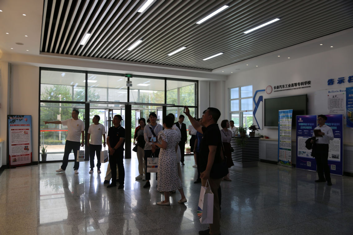 调研组一行先后来到智能制造协同创新中心、汽车智能技术实训区、汽车造型技术实训区、捷豹路虎实训区、AHK实训基地等地参观考察。调研组详细了解了学校人才培养模式、校内外实训基地建设等工作开展情况,对我校产教融合的办学特色及成果给予充分肯定和高度评价。