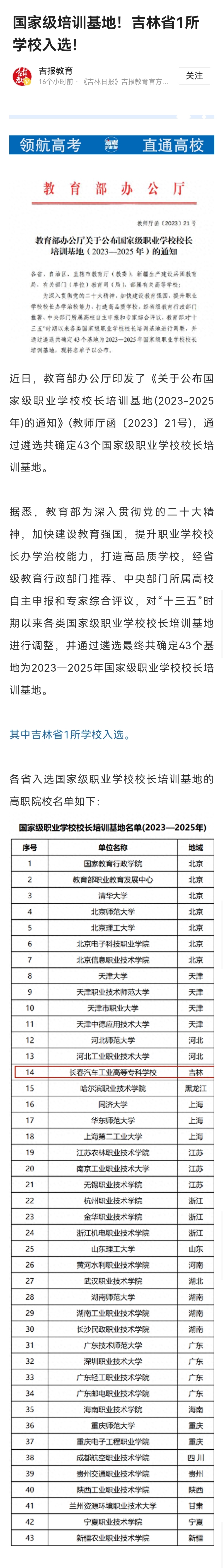 吉报教育——国家级培训基地!吉林省1所学校入选!