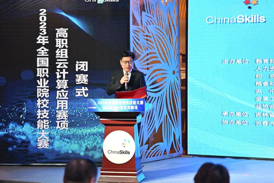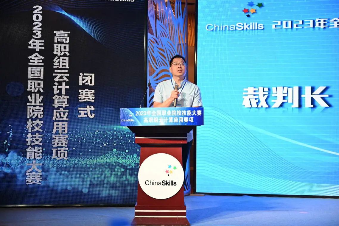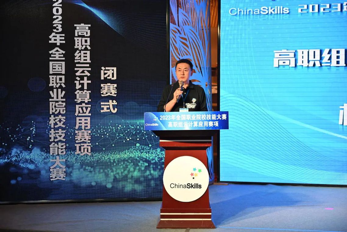 李东兵宣布2023年全国职业院校技能大赛高职组“云计算应用”赛项顺利闭赛。