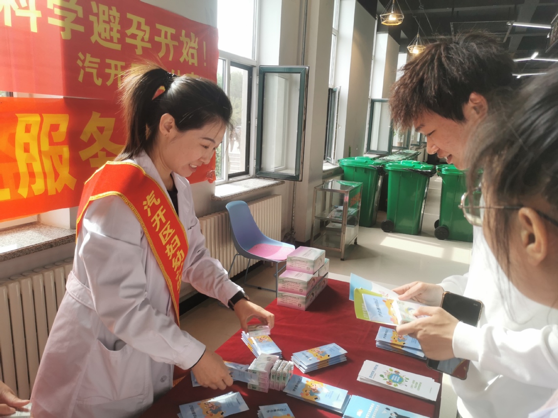 9月26日,我校总务处、学生处(团委)联合汽开区卫生健康局开展校内“世界避孕日”宣传活动。