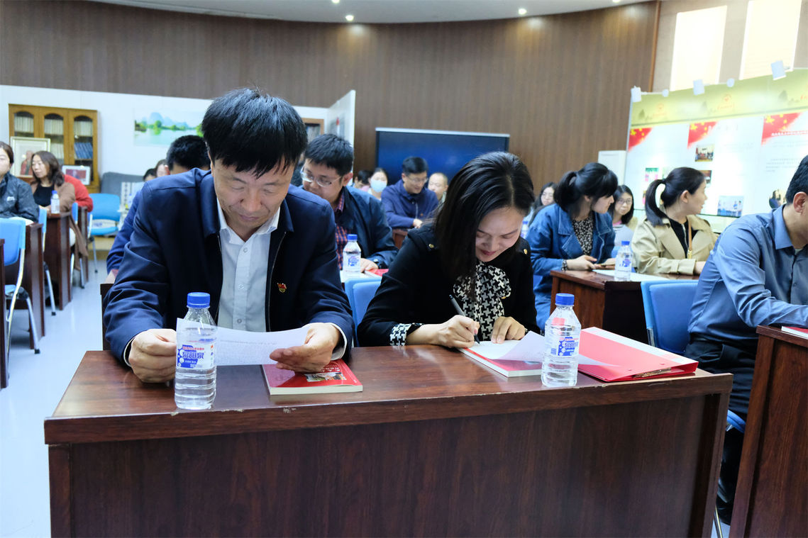 活动中,党总支全体教师观看了《赤子情怀、信念永恒——追记“全国优秀共产党员”郑德荣同志》专题片,了解了郑德荣同志一生执着信仰马克思主义,终生致力于中共党史学术研究,毕生悟初心守初心践初心的光辉事迹。看后,大家都深刻认识到所担负的教书育人的使命之神圣,并承诺做学生健康成长的引路人,以高尚的情操感染人,以渊博的知识教育人,以科学的方法引导人,以良好的形象影响人,争做师德高尚的教育工作者。随后,全体教师在活动现场签署递交了师德师风承诺书。