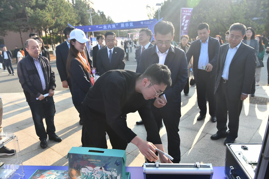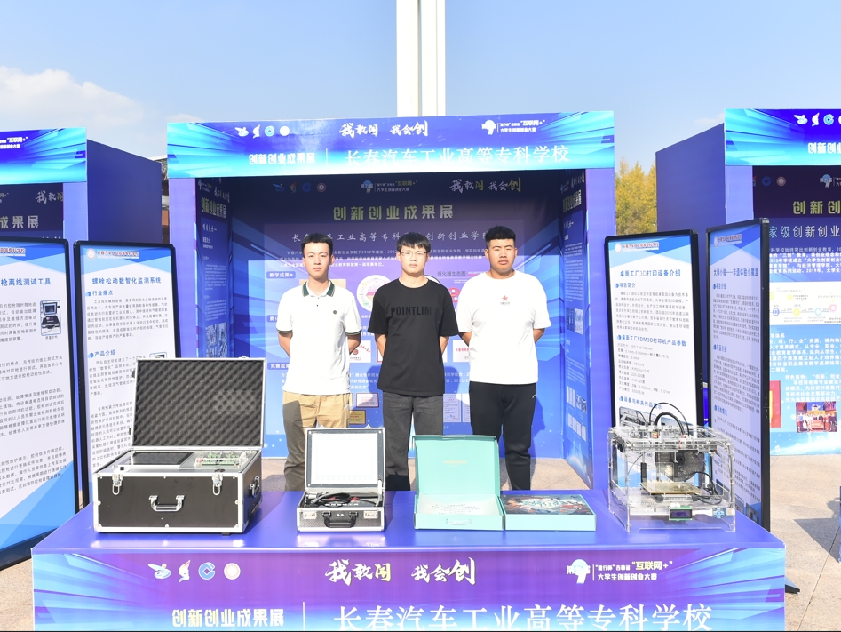 本次吉林省“互联网+”大学生创新创业大赛闭幕式举办了丰富的同期活动,包括吉林省高校服务“一主六双”高质量发展战略成果展、吉林省大学生创新创业成果展、大学生创客集市、“双创”直播等。活动邀请了省教育厅相关领导与省内高校的领导、师生代表以及媒体代表等参观展览。我校大学生创新创业成果展位展示了学校在创新创业领域取得的多项荣誉以及师生自主研发的桌面工厂3D打印设备、便携式胶枪离线测试工具等创新产品,受到了与会领导和参观人员的热切关注。