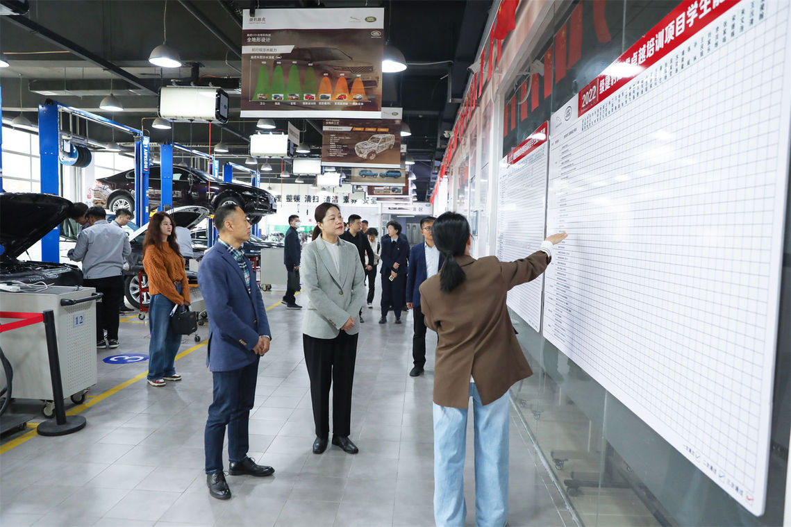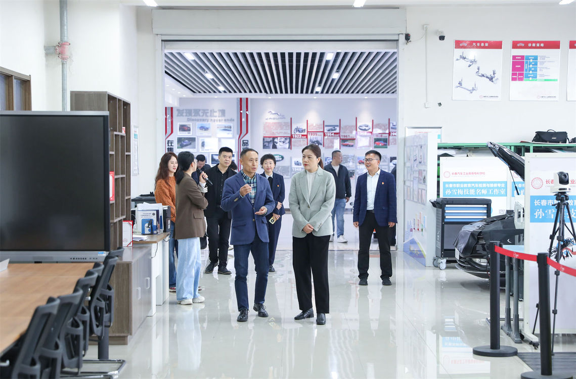 调研组一行先后参观了红旗汽车品牌服务中心、融媒体中心、新能源汽车技术实训中心、AHK东北国际认证基地、汽车品牌技术服务中心、智能汽车工程研发服务中心、智能制造协同创新中心,对我校实训基地建设及校企融合特色办学等方面取得的突出成绩给予高度赞誉。