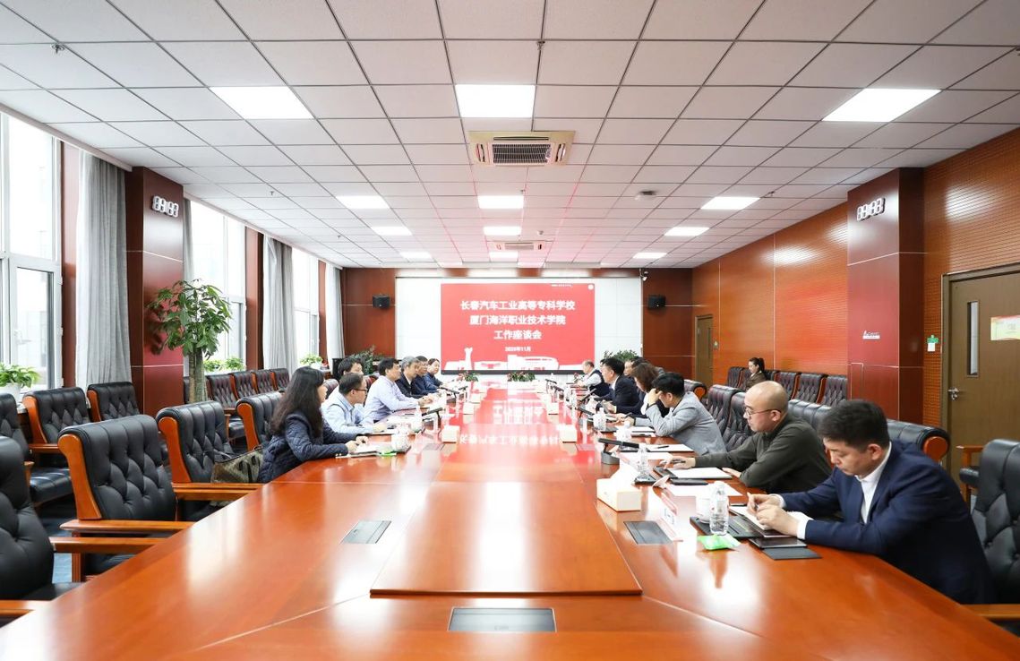 11月21日,厦门海洋职业技术学院党委书记陈一端、校长陈昌萍一行7人来我校调研交流。学校党委副书记、校长李春明,副校长胡国良、韩萍陪同调研。